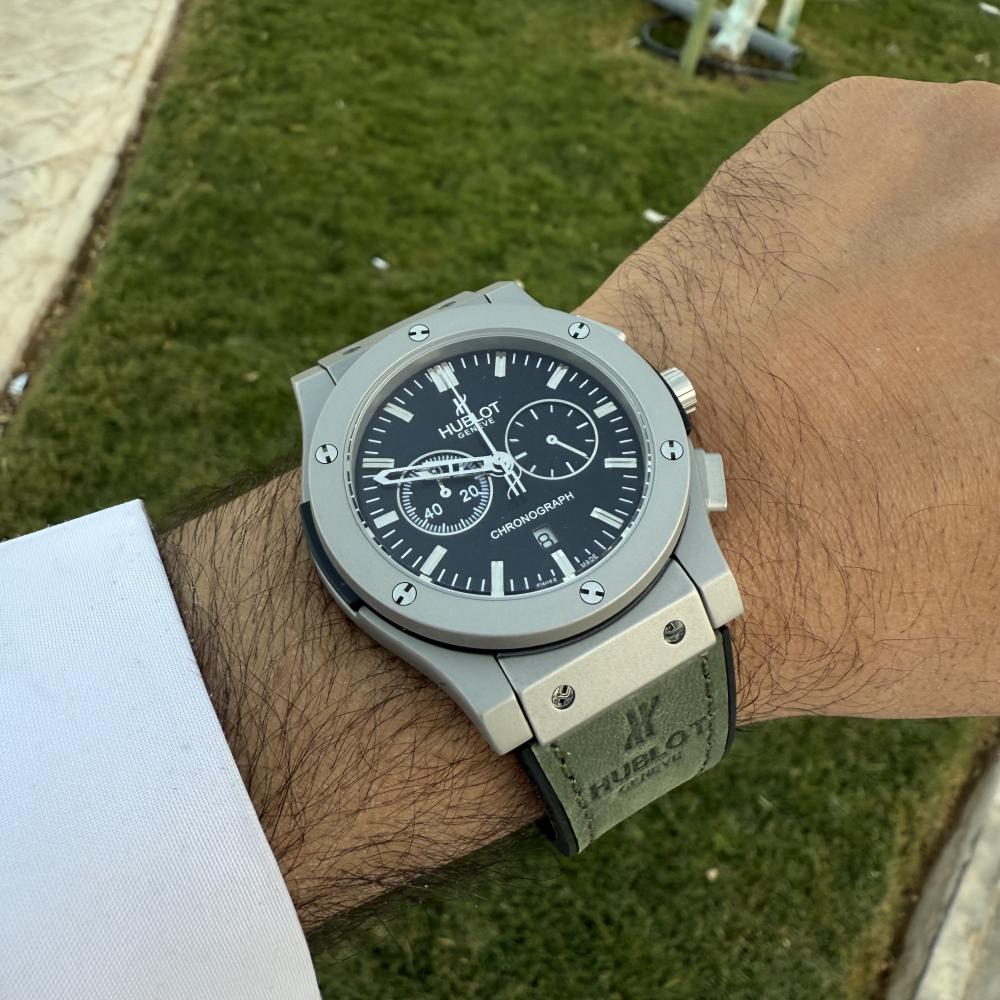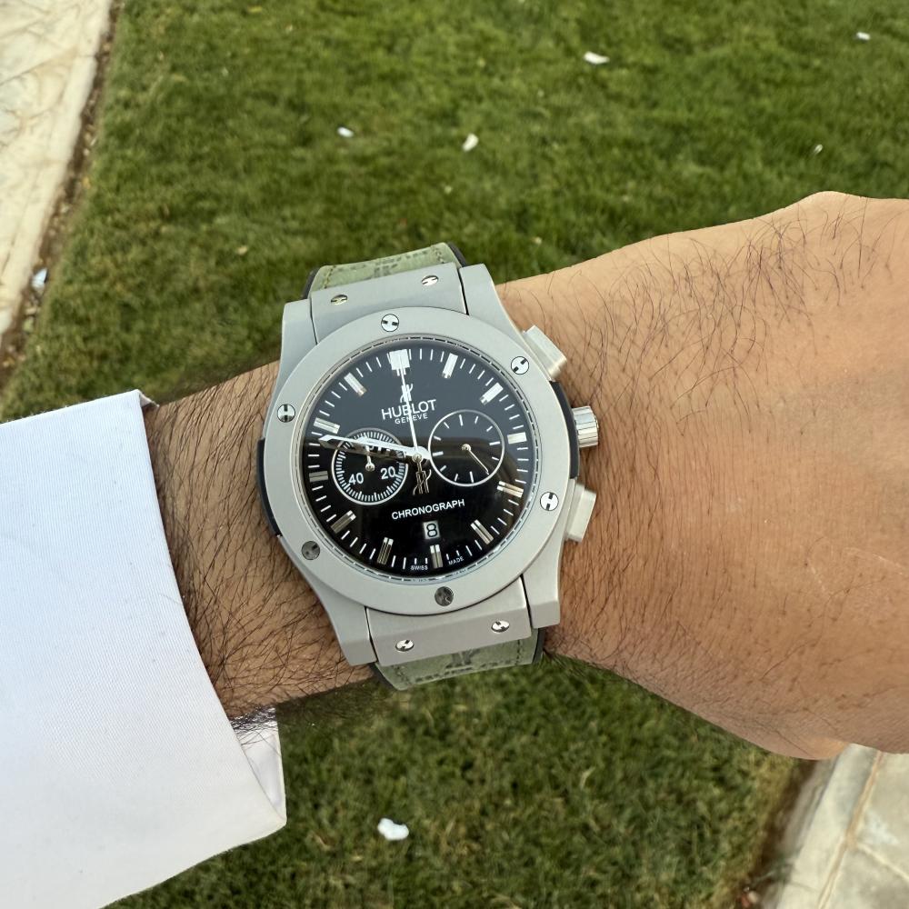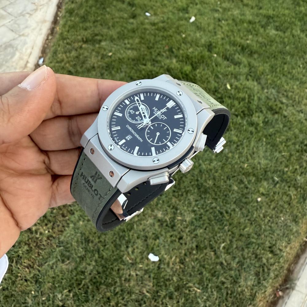 Hublot bag bangساعة اوبلو كلاسكربر الساعه من الشمواه الاخضرتصوير شخصيمقاس القطر 42MMماكينة الساعه تعمل بطاريه ستوب ووتشطبق اصلتصوير شخصي