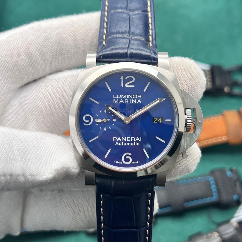 PANERAIساعة PANERAIساعة طبق اصلجودة الساعة هاي كوالتيمقاس القطر للساعه الكبير وحجم واحد 44MMسير الساعه من الجلدتصوير شخصيماكينة الساعه اتوماتيك تعمل على الحركهقزاز الساعه مقاوم للخدش