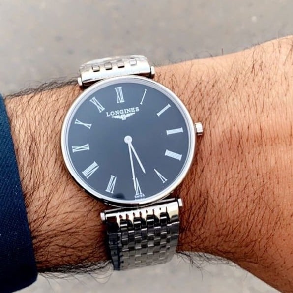 Longines watchساعة لونجين السوداءستيل السيرمقاس قطر الساعه 40mmماكينة ساعه بطاريهطبق اصلتصوير شخصيملاحظه جميع ساعات تبعد عن الماء