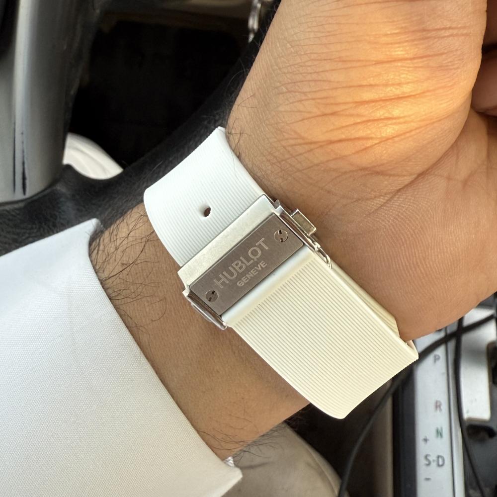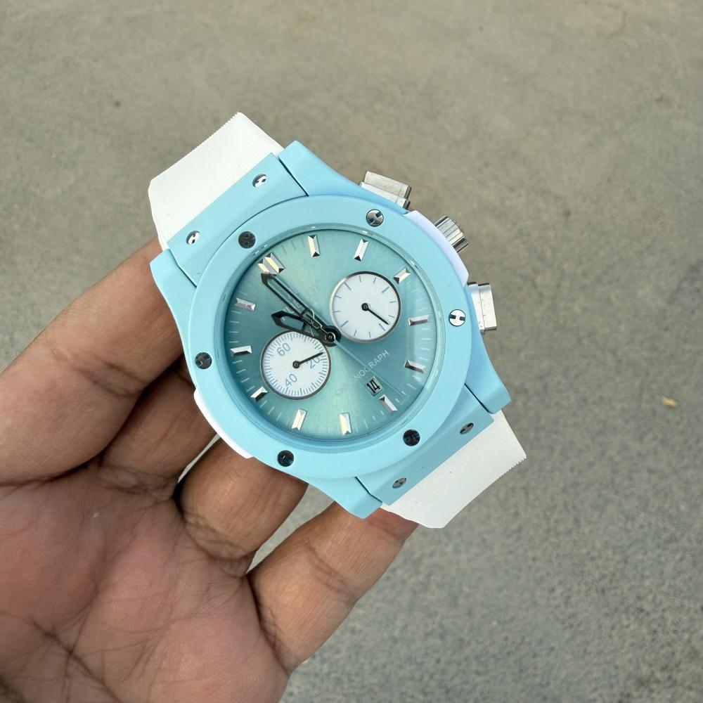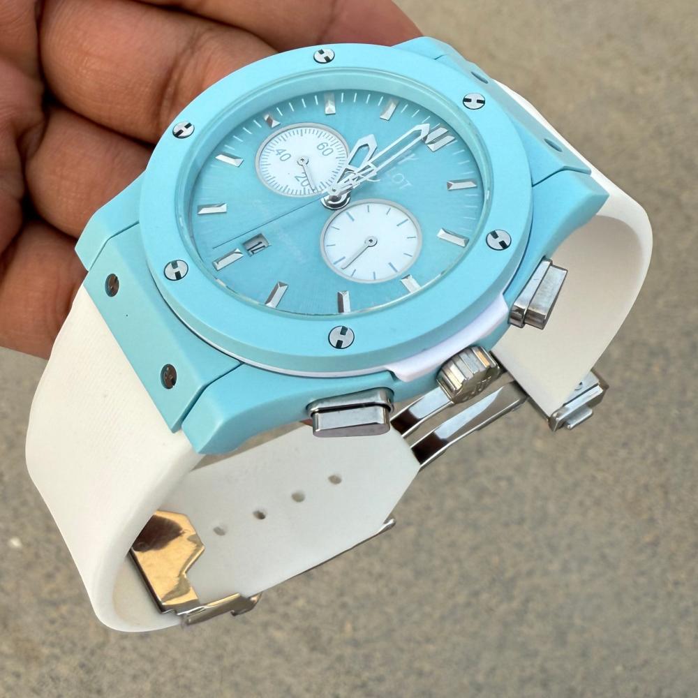 Hublot BagBangساعة هوبلودرجه ممتازهاللون تيفنيسير ساعه ربر ابيضماكينة الساعة بطاريه ستوب ووتشتصوير شخصي للمنتجالساعه كوبي اصل