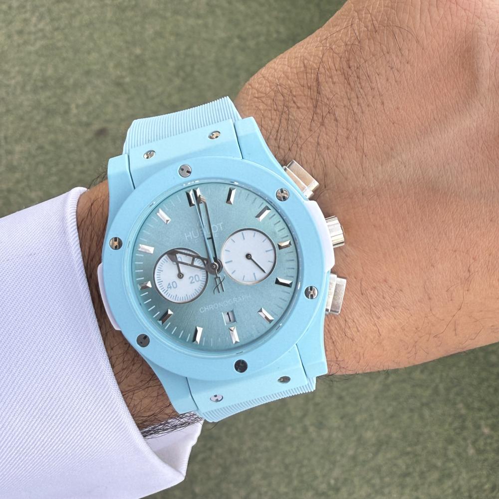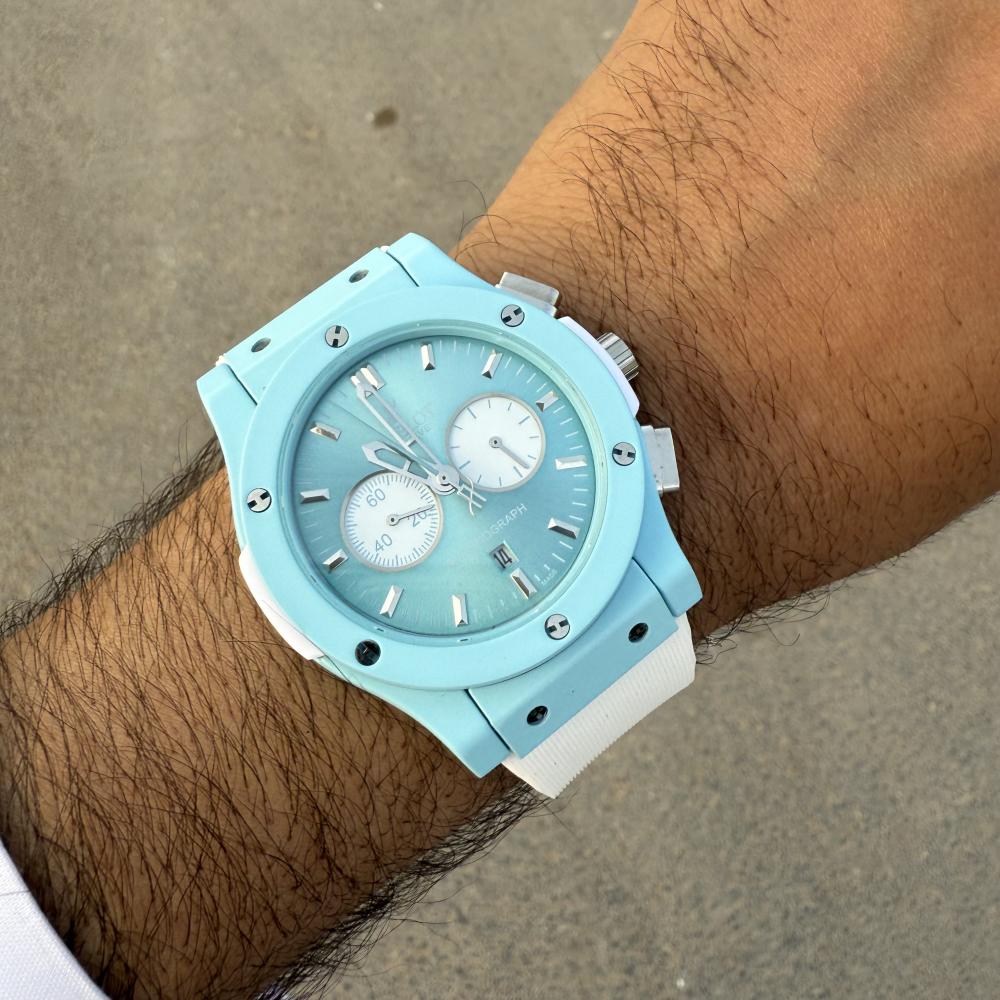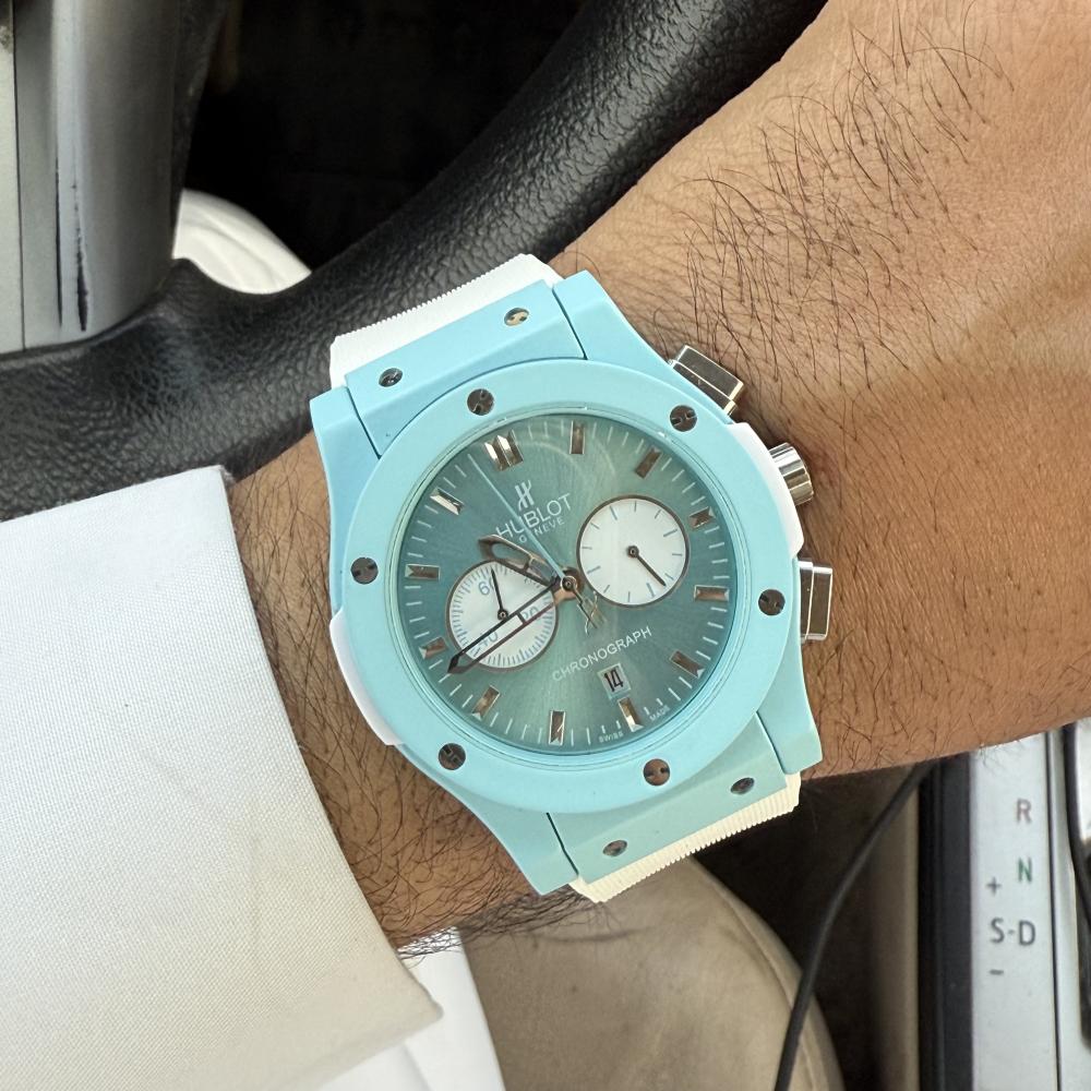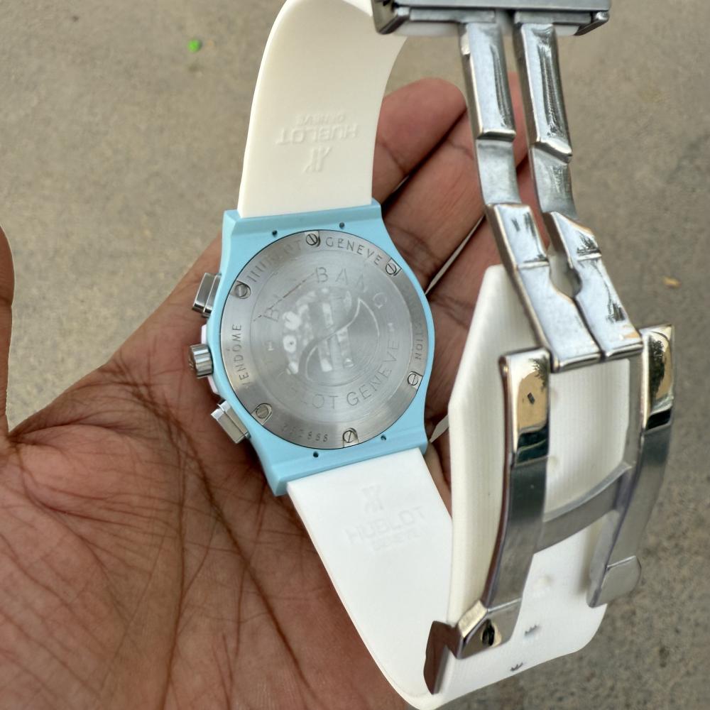 Hublot BagBangساعة هوبلودرجه ممتازهاللون تيفنيسير ساعه ربر ابيضماكينة الساعة بطاريه ستوب ووتشتصوير شخصي للمنتجالساعه كوبي اصل