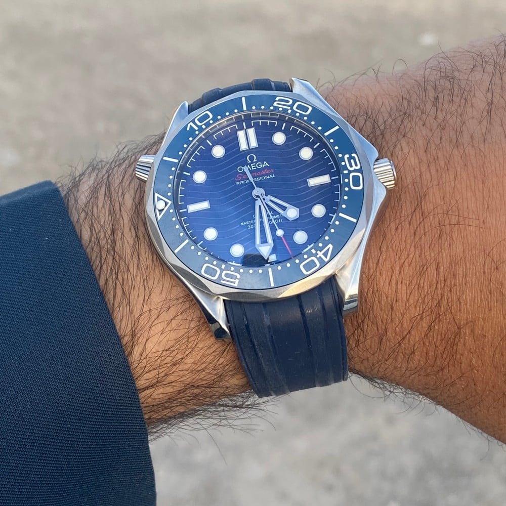 omega watchساعة اوميغاساعه طبق اصلماكينة ساعه اتوماتيك تعمل بالحركهسير ساعه ربر ممتازقفل ساعه مشبكمقاس قطر ساعه 40لون ميناء الازرق